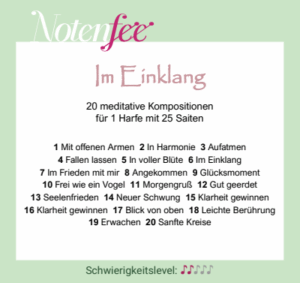 Die Arrangements sind so für die Soloharfe gesetzt, dass sie das ganze Klangspektrum dieses wunderbaren Instrumentes ausnutzen. Selbstverständlich passen die Sätze auch zu den Ausgaben für Standardharfen und zum Notenheft, so dass man in ganz verschiedener Besetzung musizieren kann. Außerdem sind auf den Rückseiten die Titel auch als Partitur gesetzt, wobei die Standard- und Bassharfe farblich voneinander abgesetzt sind für eine bessere Übersichtlichkeit